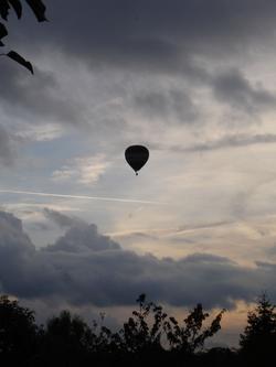 Late yesterday afternoon, the Missus called me excitedly from making music. There was a balloon going overhead. Despite there being an airfield a couple of miles down the road, we’d never seen a balloon go over. Plenty of warplanes heading for London for displays, etc, but no balloons. So I grabbed my camera and rattled off some shots. Because the balloon was set against a bright background of the late evening sky, it came out a bit dark. But despite this, I still think the pictures are great!